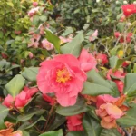 Le Camellia japonica ‘Dr King’ connait une floraison rouge au coeur jaune. Son feuillage est vert foncé brillant.