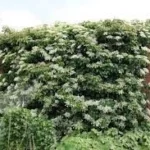 L’Hydrangea petiolaris est un cousin de l’hortensia traditionnel de nos jardins, mais grimpant, à la floraison précoce entre juin et juillet blanche qui termine légèrement verte.