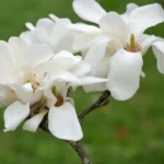 Magnolia à  feuillage vert franc lustré, avec une superbe floraison blanche de printemps, entre avril et juillet.