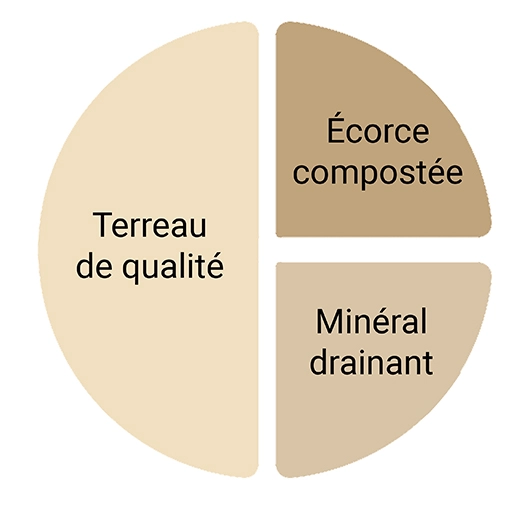 Choisissez un pot dont le volume équivaut au double du précédent, et si possible plus large que profond, en cohérence avec la taille du sujet.